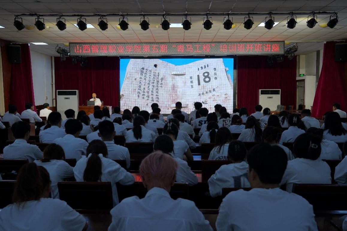 开班典礼在国际歌激昂的旋律中圆满结束。随后院团委书记张文斌为大家讲授开班第一课《勿忘国耻振兴中华》。他以生动的语言和丰富的史料,将那段沉重的历史画卷缓缓展开。通过大量的图片、影像资料,让在场学员深刻感受到了当时国家所面临的巨大危机和人民所遭受的苦难。他强调了“九一八”事变的历史意义和现实启示,并指出它不仅是中华民族的国耻日,更是激励我们不断前进的动力源泉。他告诫同学们要铭记历史,不忘国耻,珍惜来之不易的和平。同时,要以史为鉴,努力奋斗,为实现中华民族的伟大复兴贡献自己的力量。