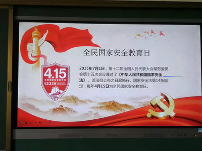 召开主题班会。4月13日至20日,结合庆祝中国共产党成立100周年和疫情防控实际,围绕《国家安全知识百问》《国家安全知识宣传手册》等,组织召开“国家安全,人人有责”国家安全教育主题班会,充分调动学生积极性,增强国家安全观念,共同维护国家安全。