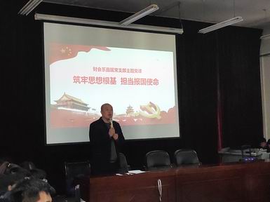 “中国共产党是一个什么样的党?”“为什么要加入中国共产党?”“中国共产党人的初心和使命是什么?” 张文斌以入党三问作为引言,分别从中国共产党的性质,共产党人的初心是如何形成的、为什么要“不忘初心、牢记使命”以及如何做到“不忘初心、牢记使命”四个方面,带领学生们感受共产党人的历史传承以及新时代共产党人的历史使命。“方志敏、焦裕禄、邱少云、钱学森……黄文秀”一张张熟悉的照片,一个个闪光的名字,一句句无悔的誓言,他深入浅出地向同学们讲解了党在不同的历史阶段如何践行初心,增进了学生们对国内外形势的深入理解,坚定了爱党爱国的人生信念。之后,他向学生们介绍了米乐近几年来学生党建活动情况和大学生入党流程,就入党过程中的细节问题进行了重点强调。张文斌激励同学们要坚定理想信念,积极向党组织靠拢,争取早日加入党组织,为中国共产党注入青春血液,肩负起新时代青年的使命,为实现中华民族伟大复兴的中国梦不懈奋斗。他表示,正值“不忘初心、牢记使命”主题教育之际,财会系直属党支部举行入党启蒙大会,正当其时,意义深远,希望所有学子在这里一同感悟初心、追寻初心、逐梦初心。