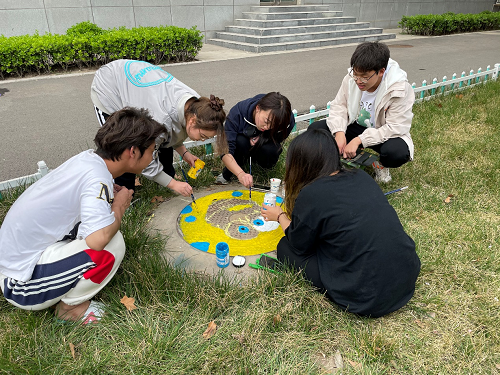 这些美丽的涂鸦出自艺术系学生之手,同学们利用闲暇时间,提上油漆、水桶,拿起画笔,发挥想象力和创造力,天马行空,奇思妙想,为校园150余个井盖“穿新衣,换新颜”,让昔日冰冷的井盖具有了“艺术范”,为春日美丽校园再添新风采。