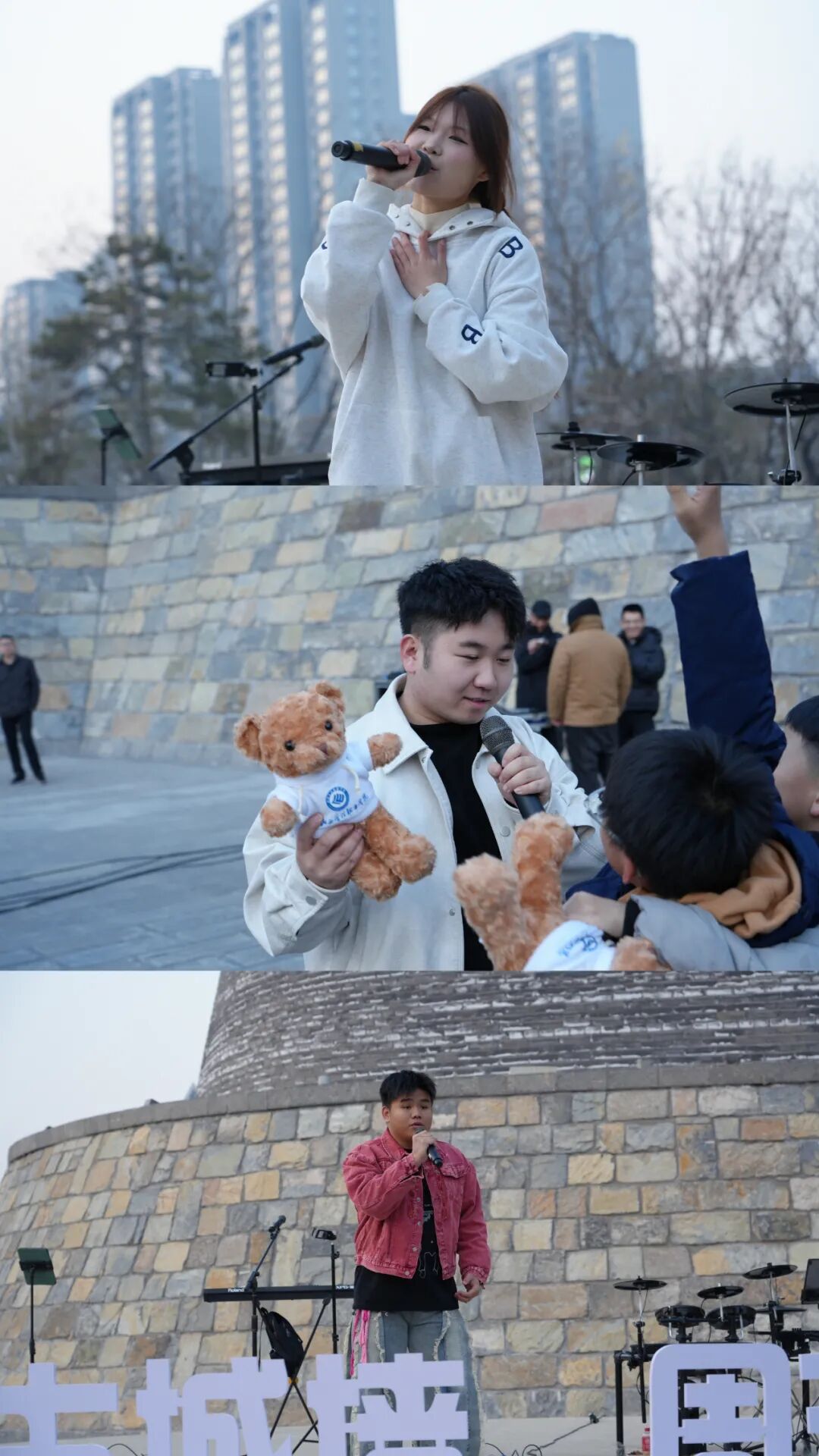 歌曲串烧环节,学子们以清澈歌声演绎流行与抒情金曲,台风稳健、表现力十足,赢得台下阵阵掌声,市民纷纷驻足观看、拍照留念,歌声与掌声交织成古城墙下的青春乐章。