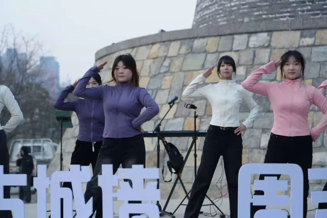 下午3时,古城墙锣鼓舞台氛围热烈。本土乐队开场后,米乐学子接续登场:舞蹈《Pick Me》节奏明快、动作整齐,尽显青春朝气,瞬间点燃现场。