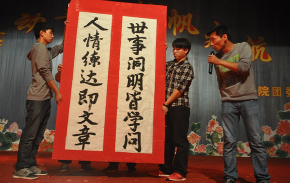 晚会有舞蹈、歌曲、书法表演、诗朗颂等多种形式。新疆学员班的程玉湉等同学带来的精彩歌伴舞《青春舞曲》和麦达提·贝克演绎由新疆民谣改编的《巴郎仔》,让我们共同领略了来自边疆的异域风情和那片美丽土地上人民的热情好客。军训教官张龙、何森洹等在震天口号中的武术和擒拿表演,使人们仿佛回到了充满活力的军训场。军训教官周辉和唐源的《兵心》,展示了人民子弟兵的温情。歌曲《想你的夜》、《如果没有你》、《我的歌声里》等唱出了学子对青春的热爱,对未来的执着;《勇动青春》、《wake wake》等舞蹈,跳出了学院人如火的热情;武生明老师的书法表演、崔健和白洁的诗朗颂演绎了对知识的渴望和对人生的思考。晚会历时两个半小时,精彩纷呈,高潮迭起,在健美操《啦啦操》中圆满落下帷幕。