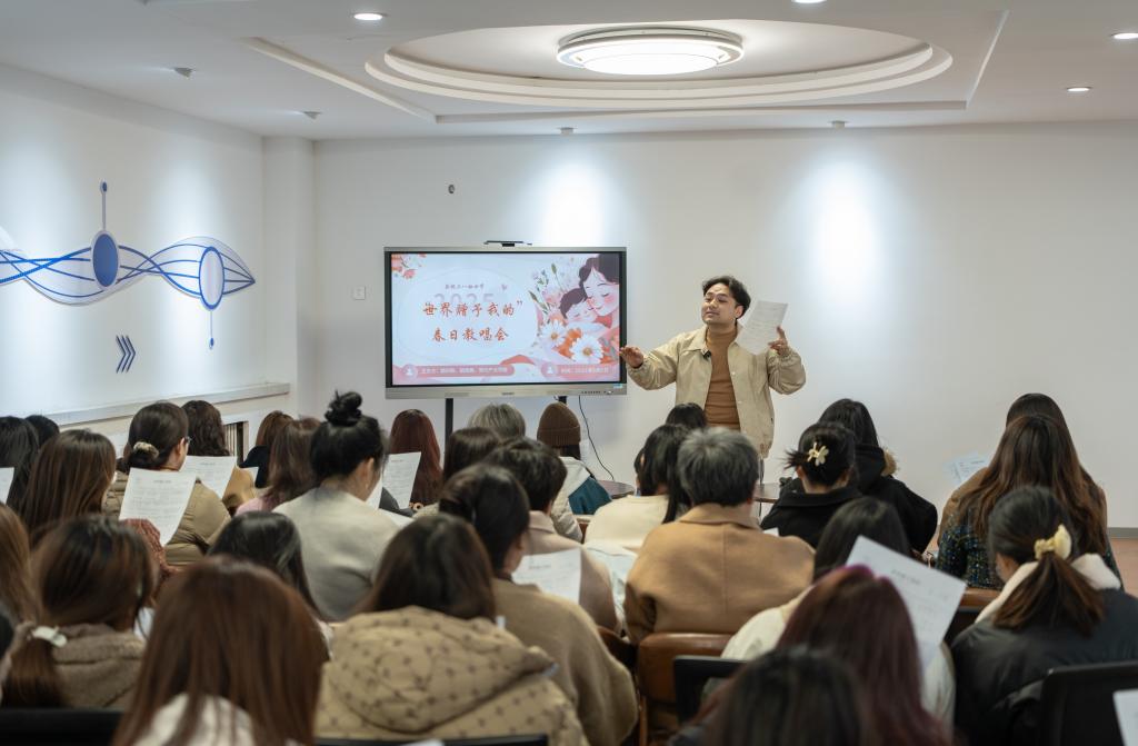 35日,“世界赠予我的”春日教唱会在众创空间一层会议室举行。现代产业学院声乐老师白朴现场教学,带领师生们从发声技巧学起,逐步掌握《世界赠予我的》这首歌的精髓。分组轮唱时,师生们兴致高涨,氛围融洽。最终,大家用整齐而温暖的歌声完成合唱,展现了师生间的深厚情谊与团队凝聚力。