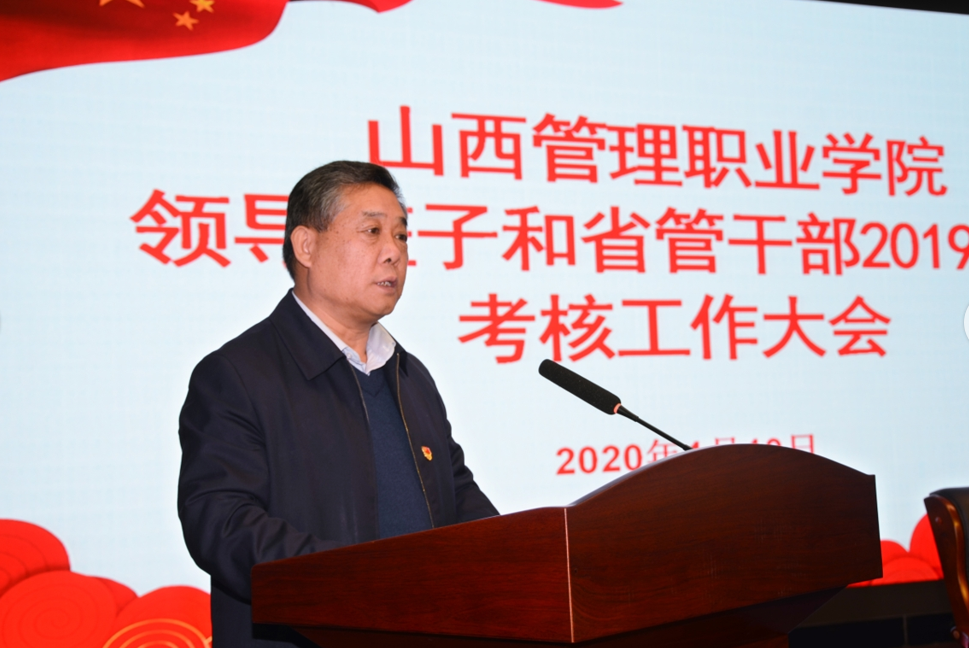 1月10日上午,学院2019年度领导班子和省管干部考核大会在崇德楼三层报告厅召开。省人社厅考核组组长、副厅长师广卫等一行7人出席会议。院党委副书记、院长马联合主持。学院领导班子成员、副科以上干部和中级职称以上专业技术人员参加大会。