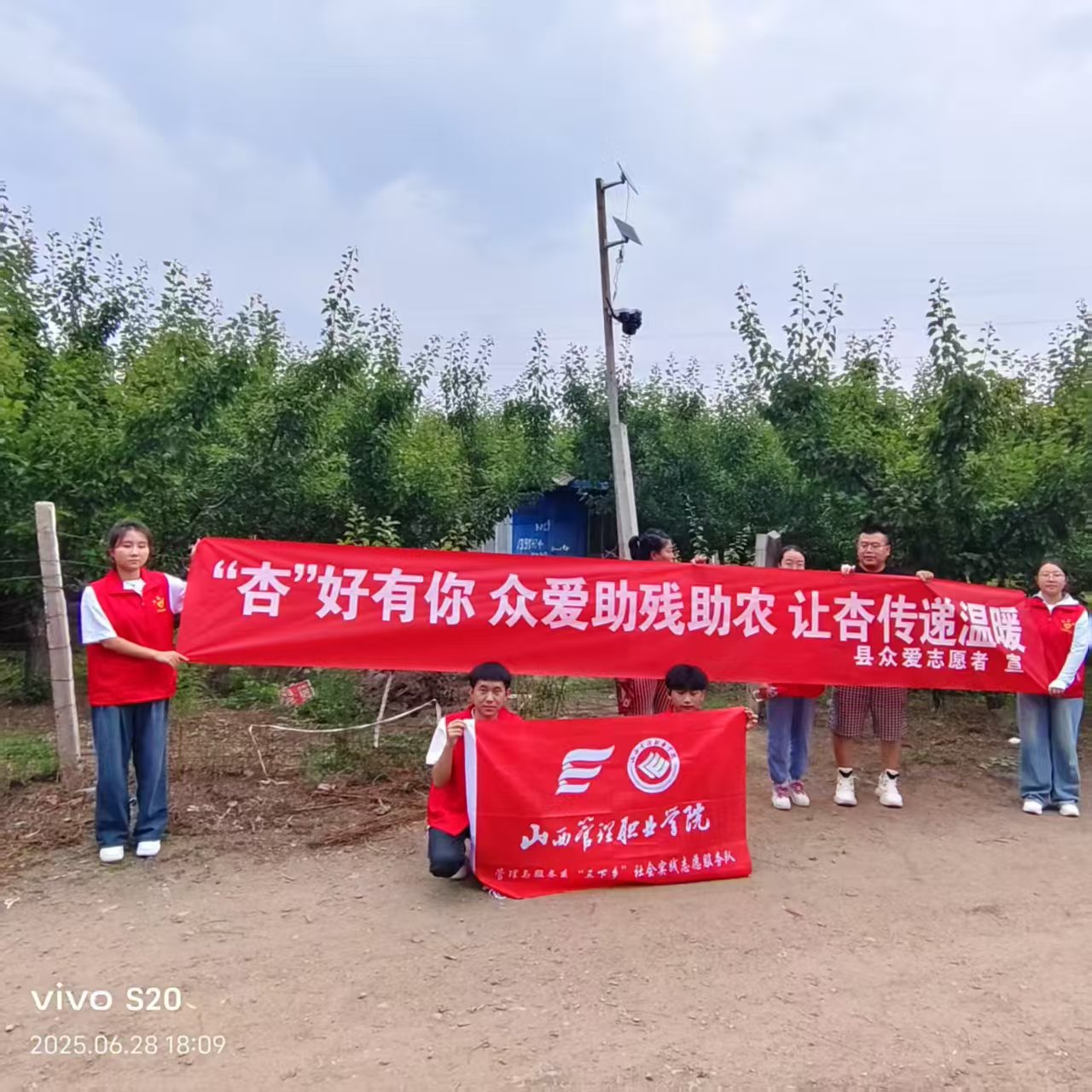 管理与服务系聚焦实践与帮扶。其中一名学生在临汾市襄汾县6+1商务酒店进行为期两个月的前台实践,熟悉入住登记、客诉处理等流程,在忙碌中提升沟通与协作能力,获酒店经理肯定。该系志愿服务队还携手县众爱志愿者走进乡村杏园,开展“‘杏’好有你”助残助农活动,协助采摘分拣杏子、通过线上推广拓宽销路,同时为残疾农户提供帮助与陪伴,搭建起校园与乡村的爱心桥梁。此外该系志愿者实践队还赴文峪河开展“三下乡”环保实践活动,10余名志愿者用实际行动守护这条滋养两岸的“母亲河”。
