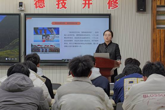 接下来,付晨园老师深入浅出地讲解了新时代青年应该具备哪些品格,新时代青年既要有坚定的信仰与远大的理想,也应具备高尚道德,遵守行为规范,还要有创新精神,敢于创新,勇于实践。她还从实践角度展开讲解,鼓励学生们脚踏实地,在行动中书写青春之华章。课堂最后,她以习近平总书记2025年新年贺词中的一句话来共勉师生——“梦虽遥,追则能达;愿虽艰,持则可圆。中国式现代化的新征程上,每一个人都是主角,每一份付出都弥足珍贵,每一束光芒都熠熠生辉”。