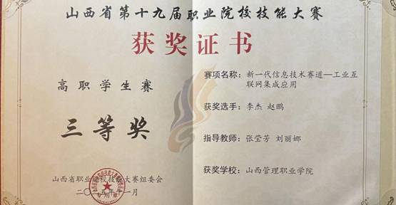 2025年11月,荣获“工业互联网集成应用”职业院校技能大赛三等奖