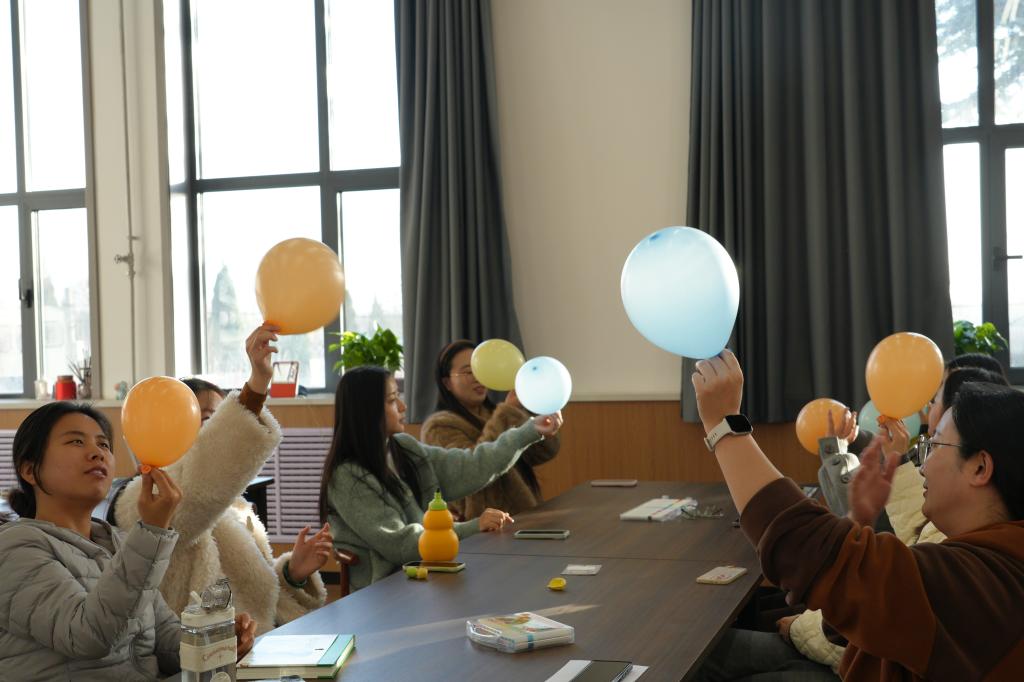 活动伊始,王妙辉通过“气球破冰”环节,用气球的大小直观呈现辅导员们的能量状态,打破了“大家都很好”的假象,为后续活动营造一个安全且开放的心理场域。