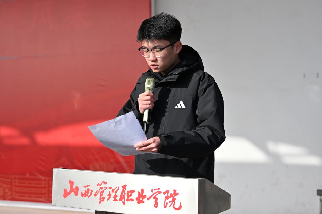 会上,学工部副部长刘临英宣读了《关于表彰第九届国旗护卫队队员的通报》和《关于吸收张倬毓等40名同学为第十届国旗护卫队正式队员的决定》。文化艺术系2025级动漫设计一班学生睢慧琦以《铭记历史担使命,技能报国正当时》为题进行了国旗下的演讲。