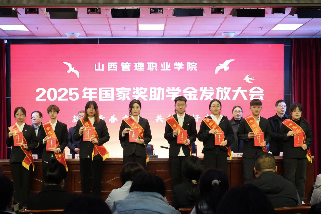 院领导为获得2025年国家奖助学金及学院奖学金的学生代表颁发奖助学金和荣誉证书。