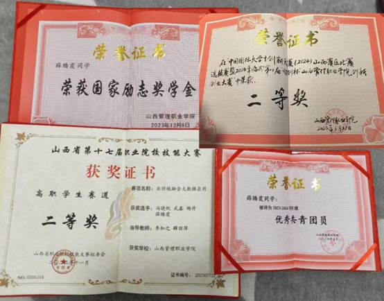 2023年11月,荣获山西省第十七届职业院校技能大赛“业财税融合大数据应用”高职学生赛道二等奖。