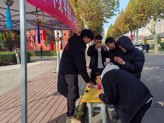 在展示活动中社团还依据自身特色开展了"穿针引线"主题游戏。游戏不仅考验参与者的耐心和细致,还锻炼了手眼协调能力,提高了手指的敏感度和灵活性。游戏的趣味性和挑战性吸引了大量学生驻足参与,现场气氛热烈,欢声笑语不断。