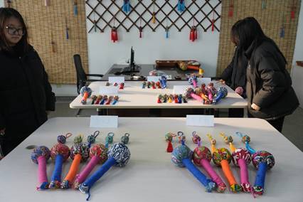 活动现场作品琳琅满目,色彩鲜艳、造型各异,从传统的太平绣球到融入现代生活的创意绣球,每一件作品都凝聚着学员们对太平绣球技艺的理解与传承。