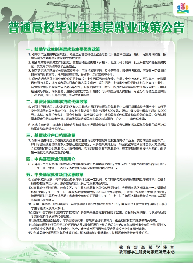 普通高校毕业生基层就业、自主创业、应征入伍及就业服务政策公告