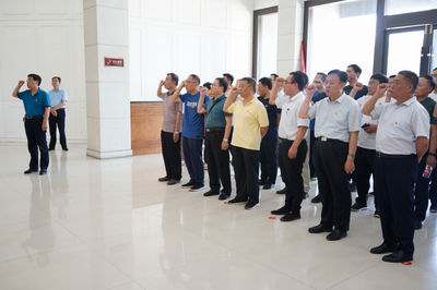 彭真同志是伟大的无产阶级革命家、政治家、杰出的国务活动家,坚定的马克思主义者,我国社会主义法制的主要奠基人,党和国家的卓越领导人。在彭真生平业绩陈列大厅彭真铜像前,院党委委员、副院长丁建业领誓,全体党员举起右拳庄严宣誓,以铿锵誓言表达对党的无限热爱与忠诚。
