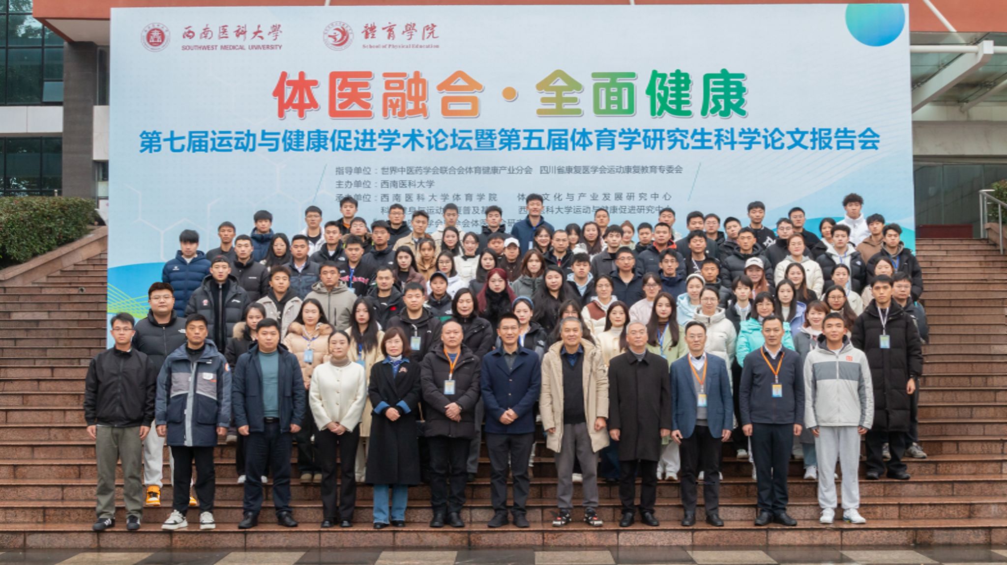 本次论坛以“体医融合·全面健康”为主题,由世界中医药学会联合会体育健康产业分会、四川省康复医学会运动康复教育专委会为指导单位,全讯新2网官网主办,全讯新2网官网体育学院、体育文化与产业发展研究中心、运动与健康促进研究中心、世界中联体育健康产业分会体医融合研究基地、国家体育总局体育文化发展中心巴蜀体育文化研究基地、泸州市科学健身与运动康复普及基地共同承办。论坛采取线下方式进行。本届论坛吸引了来自北京体育大学、上海体育大学、成都体育学院、湖北民族大学、全讯新2网官网等66个单位、200余名体育学研究生及研究者投稿和参会,大家汇聚一堂、深入研讨,交流了当前“体医融合、全面健康”研究思路,深入探讨了运动与健康促进的未来发展方向。