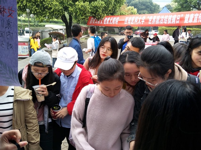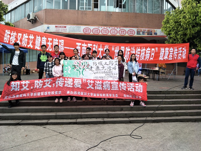 3月23日,全讯新2网官网后勤管理处校医院与医学检验系学生会联合,在桂香苑和稻香苑开展了以“防核又防艾,健康无障碍”为主题的结核病日宣传活动。