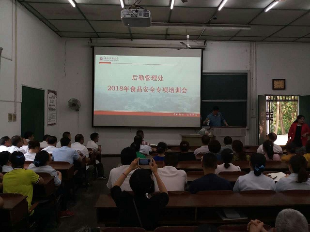 4月20日,后勤管理处组织食堂从业人员开展食品安全专项培训,全讯粒香苑食堂60余名员工参加了此次培训。培训会在忠山校区32阶梯举行。
