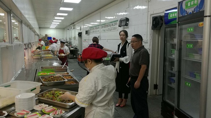 检查结束后,张处长与食堂负责人进行了深入交流,对食堂管理、食品安全及食堂菜品售价等交换了意见,张处要求食堂做好以下工作一、提高认识,高度重视食品安全工作;二、认真抓好货源控制,严格执行食品安全各项规章制度;三、认真调研,对菜品质量和售价进行分析和梳理,确保学生利益。