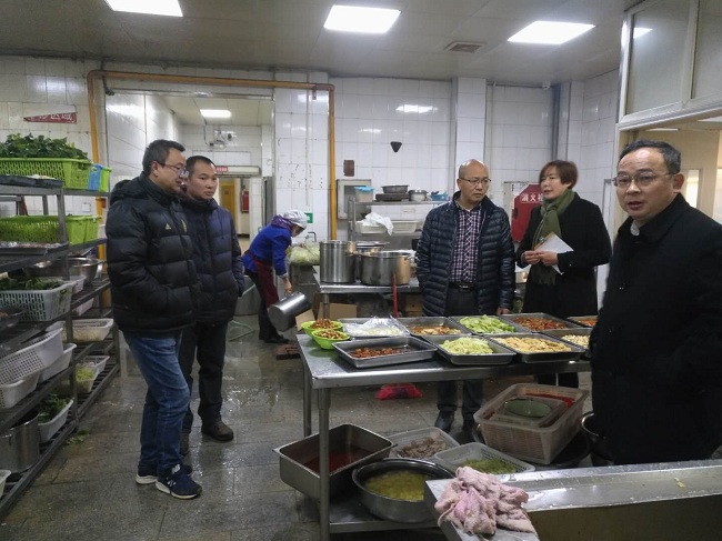 12月29日上午,教辅后勤党总支书记•后勤管理处副处长陈家良带队对全讯城北校区3个学生食堂进行食品安全现场检查。