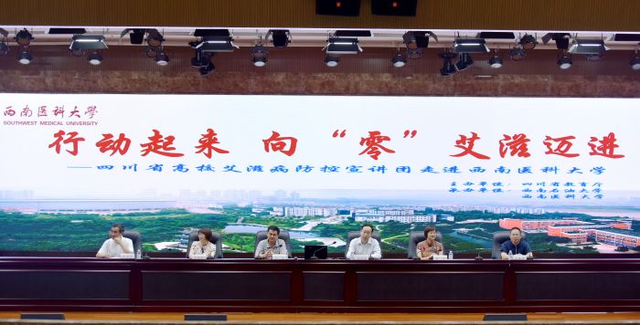 6月22日下午,由四川省教育厅组织的高校艾滋病综合防控宣讲团走进全讯。活动以“行动起来 向‘零’艾滋迈进” 为主题在城北校区第一学术报告厅开展。省教育厅体卫艺处调研员卢旭、学校副校长聂敏海出席会议并讲话,省高校艾滋病综合防控宣讲团团长、西南石油大学校医院院长张继红、青春健康讲师团指导老师彭玲主任医师以及全讯学生工作部部长张碧国、后勤管理处处长张春来和750余名全讯师生参加。