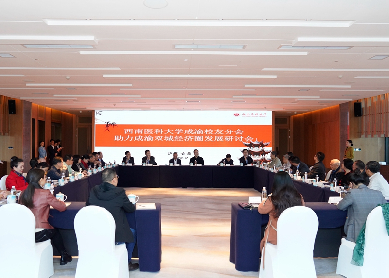 为了助力成渝地区双城经济圈建设,推动以学校为纽带的医教研产融合发展,加强成渝校友分会交流合作,11月14日,由成渝两地校友分会主办,郎酒集团承办的助力成渝双城经济圈发展研讨会在古蔺郎酒庄园召开。学校党委常委、副书记刘毅,党委常委、副校长聂敏海,对外联络处、学生工作部、三附院负责人、成都校友分会、重庆校友分会、乐山校友分会等30余名校友代表和嘉宾参加会议。会议由学校重庆校友分会会长陈传文主持。