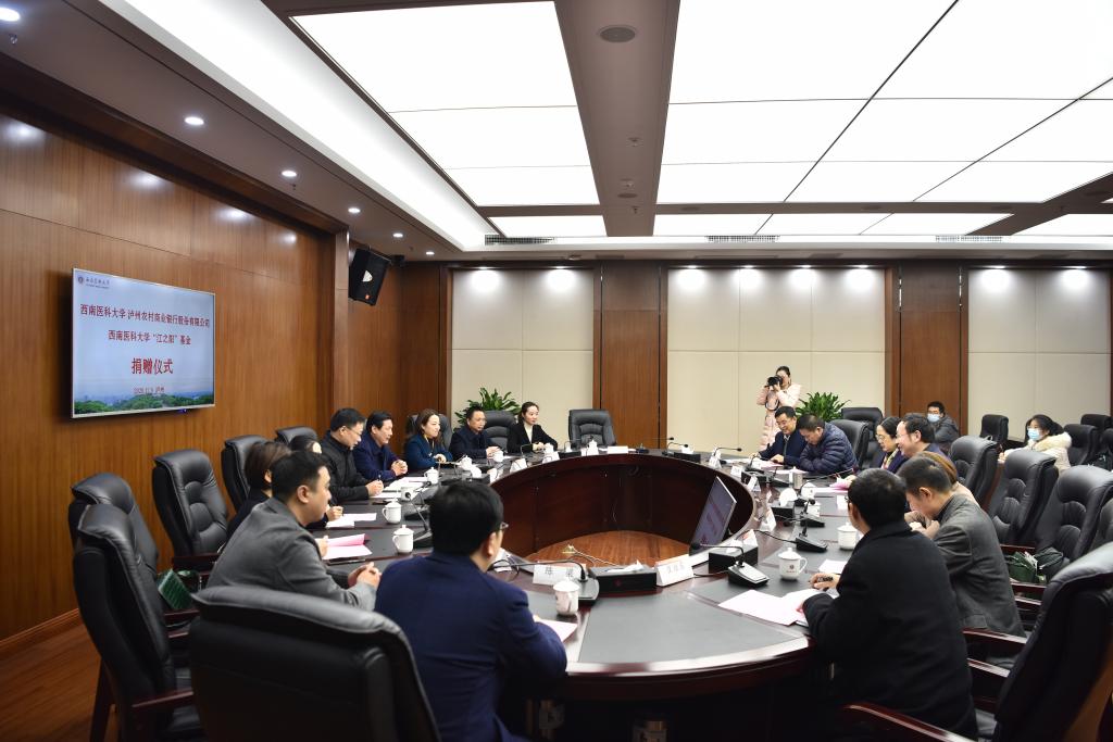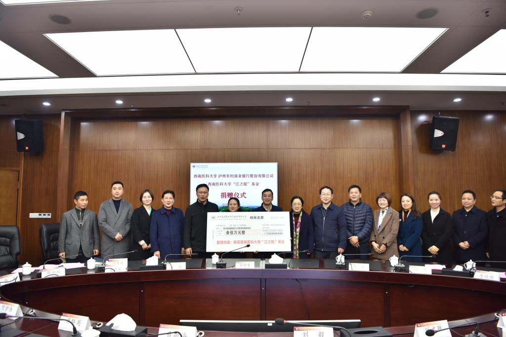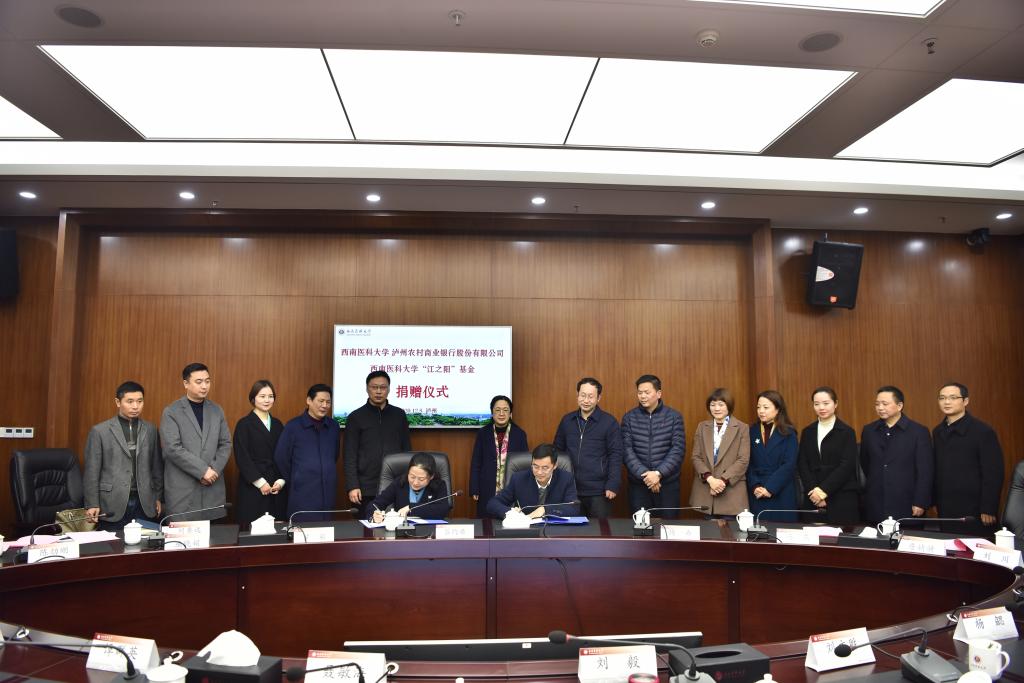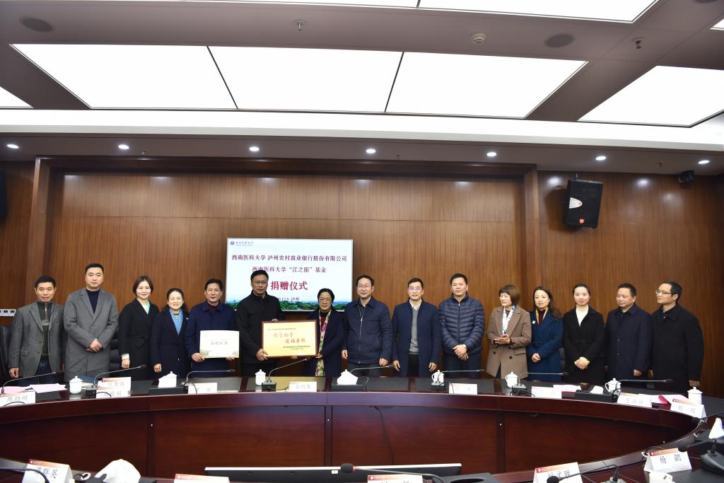 12月8日下午,全讯与泸州农村商业银行股份有限公司在德诚楼一会议室举行“江之阳”基金捐赠仪式。学校党委副书记刘毅,党委常委、副校长聂敏海,学校教育发展基金会理事长杨勰、副理事长刘文胜、何学伟、谭群英,泸州农商银行行长张弓、副行长刘秀远、江阳支行行长罗丽以及相关部门领导、师生代表参加了捐赠仪式。捐赠仪式由聂敏海主持。