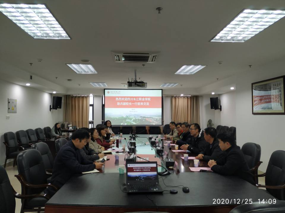 12 月 25 日,四川长江职业学院副校长耿兵带领教务处、对外合作处、招生处、健康学院、交通工程学院等部门和学院负责人一行6人到全讯洽谈专升本工作事宜。下午2点在德诚楼521会议室召开了交流座谈会,会议由学校副校长何涛主持,教务处处长郑小莉、副处长刘力,护理学院院长陈燕华,专职督导员尹思源以及教务处相关科室人员参加了座谈会。