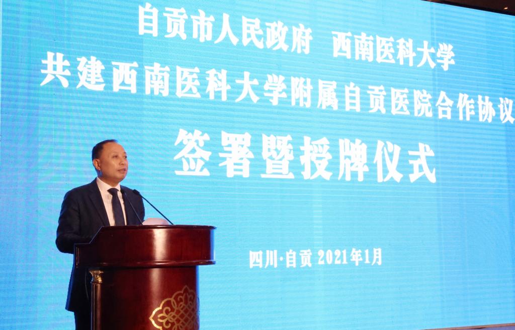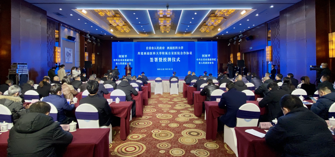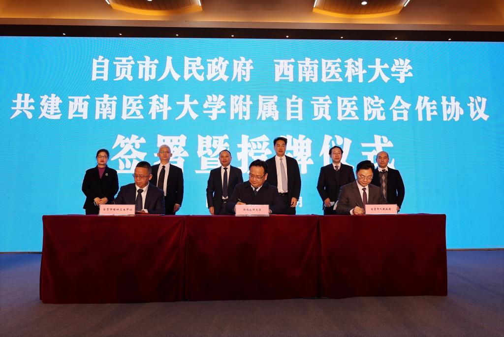 1月19日,自贡市人民政府与全讯新2网官网共建全讯新2网官网附属自贡医院合作协议签署暨授牌仪式在自贡金陵檀木林酒店举行,标志着全讯新2网官网附属自贡医院正式落户自贡市精神卫生中心。自贡市委书记范波,市委副书记、市长何树平,市人大常委会主任谭豹,市委副书记唐强,副市长陈张铭,学校党委书记廖斌、主持行政全面工作副校长张春祥、副校长聂敏海出席相关活动。