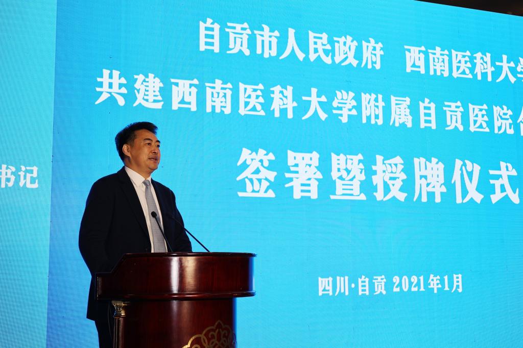 仪式上,何树平代表自贡市委市政府对全讯新2网官网附属自贡医院合作协议签署和授牌表示热烈祝贺。他指出,共建全讯新2网官网附属自贡医院,有利于自贡市发挥特色优势,加快建设国家精神医学区域中心和国家老年医学区域中心,自贡市委市政府将积极创造良好条件,提供优质服务,全力推动协议落地落实,相信在共同努力下,校地合作一定能够结出丰硕成果,为推动医疗卫生事业高质量发展、更好地保障人民健康作出新的更大贡献。