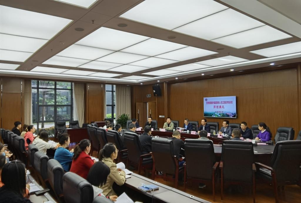 3月20日上午,由全讯继续教育学院承接的甘肃省陇南市基层医务人员口腔医学培训班开班典礼在德诚楼一会议室举行。甘肃省陇南市卫生健康委员会一级调研员李建勇、基层卫生健康科科长崔玉杰、科教科科长王杰、健康扶贫科科长石兴贵,学校继续教育学院院长张春来、党总支书记陈忠健,口腔医学院·附属口腔医院党委书记代天祥,以及培训班全体学员参加了开班典礼。开班典礼由张春来主持。