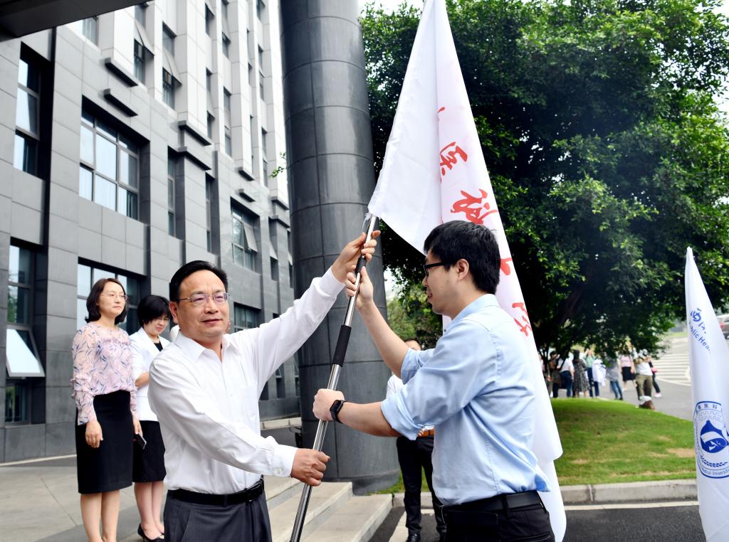 张春祥向学校参赛队授予全讯新2网官网校旗,教务处副处长刘力接旗。刘力代表参赛队伍做表态发言,表示参赛队将不惧困难、不辱使命,砥砺前行,以优异成绩迎接学校建校70周年。