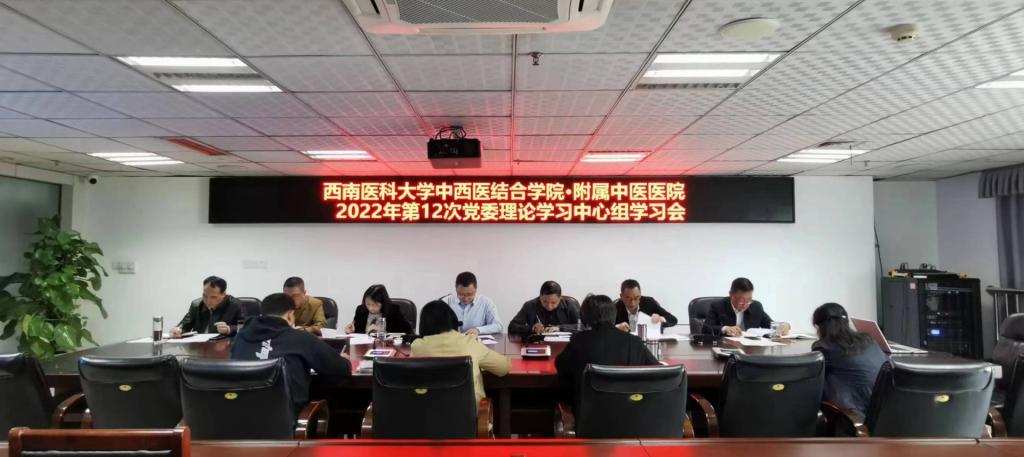 2022年11月14日,附属中医医院党委在岐黄厅召开了2022年第12次党委理论学习中心组学习会,全体党委理论学习中心组成员参加会议,会议由党委书记李志主持。