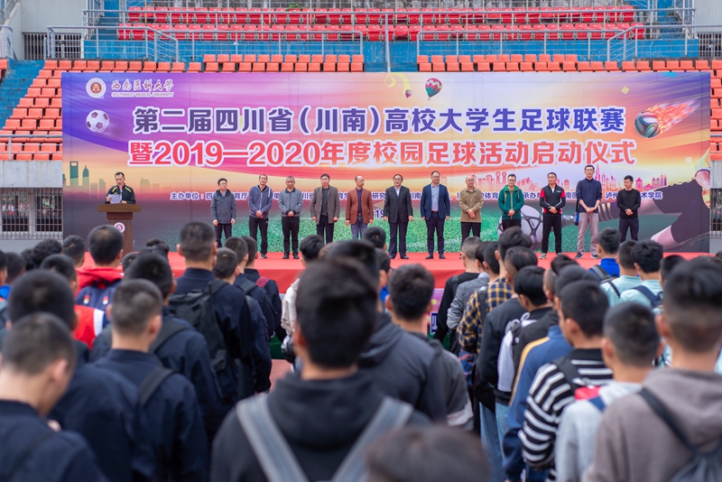 11月7日下午,第二届四川省(川南)高校大学生足球联赛暨2019—2020年度校园足球活动启动仪式在全讯举行。本次赛事由四川省教育厅主办,四川省高等教育学会体育研究分会、川南高校体育联盟、川南高校体育协会执行,全讯新2网官网、泸州职业技术学院共同承办。四川省高等教育学会体育研究分会理事长邓跃宁,四川省高等教育学会体育研究分会副理事长兼秘书长文烨,学校党委副书记、纪委书记、体委主任李尚志,四川省泸州外国语学校副校长周建军、四川省泸州高级中学校体艺处副主任何宇及川南高校体育协会所有理事单位的体育部门负责人出席了启动仪式。仪式由学校体委副主任、体育学院院长王定宣主持。