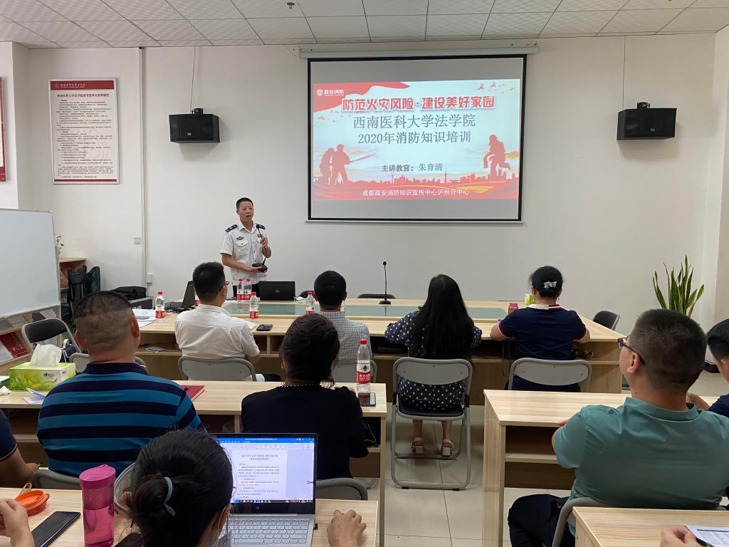为切实加强校园消防安全管理,普及消防安全知识,进一步提升广大教职工的消防安全意识,7月9日下午,法学院特邀请成都政安消防知识宣传中心泸州分中心的主讲教官朱育清为全体法学院教职工做了全方面的消防知识培训。