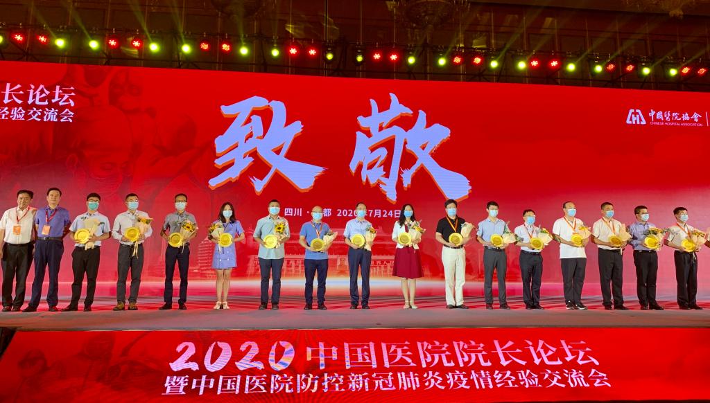7月24日上午,由中国医院协会主办,健康界承办的“2020中国医院院长论坛暨中国医院防控新冠肺炎疫情经验交流会”开幕式在北京与成都两地召开,来自全国超200家医院的管理者出席,政府机构、国内外知名医疗机构、高校科研院所、企业及社会组织等相关负责人于两地共襄盛会。本次开幕式特设致敬环节,向全体抗疫英雄致敬,全讯新2网官网附属医院荣获2020“中国医院科学抗疫党建先锋团队”奖。