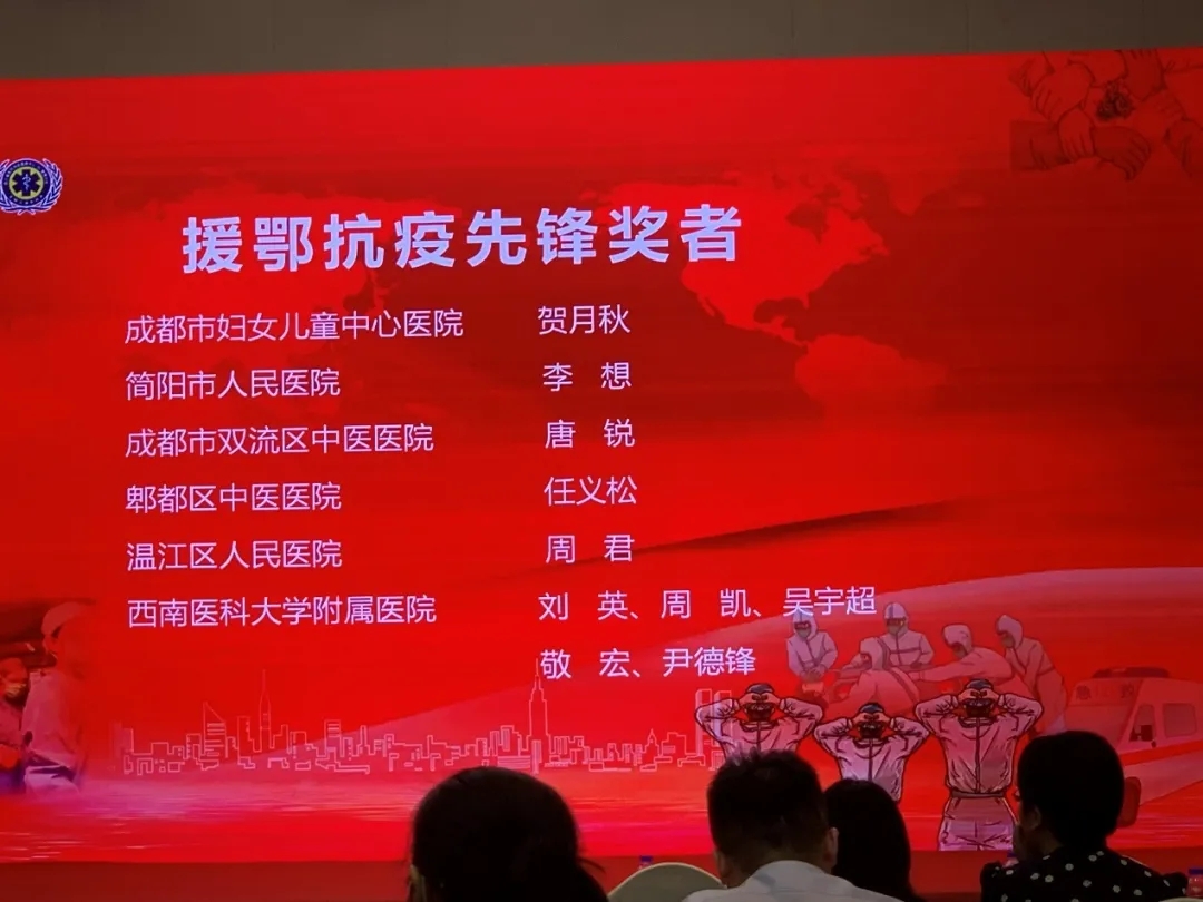 会议对此次优秀援鄂单位及个人进行颁奖。附属医院荣获“援鄂抗疫先锋”称号,同时附属医院急诊医学部刘英、周凯、尹德峰、吴宇超、敬红获得“援鄂抗疫先锋者”称号。