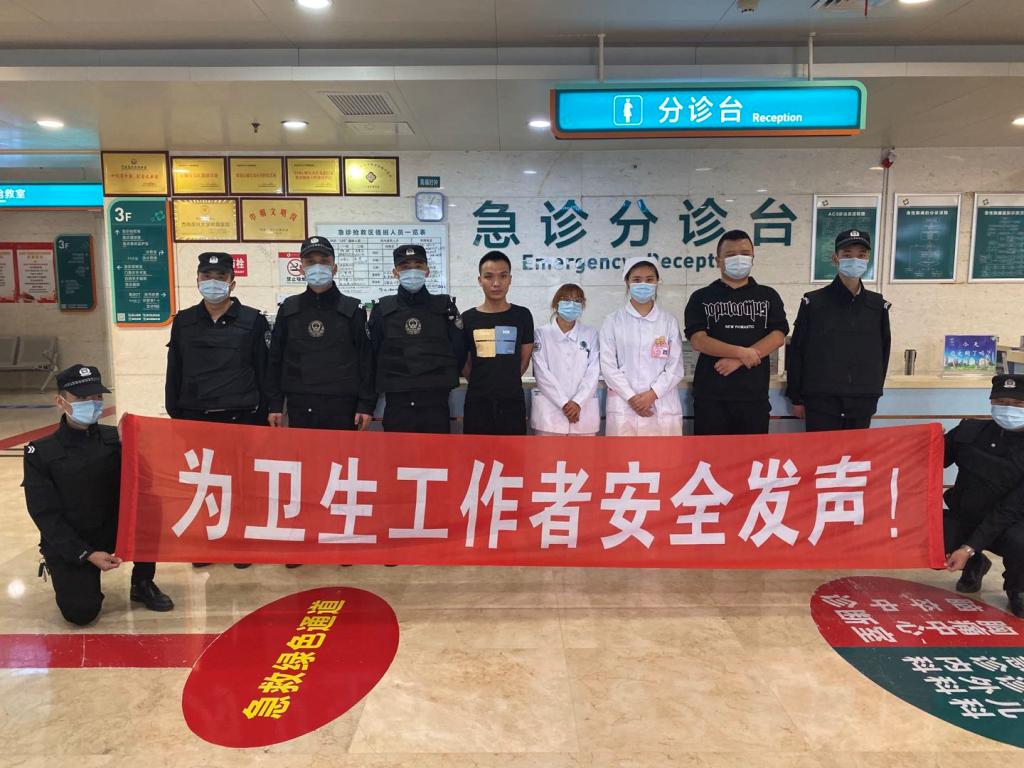 为增强医务人员面对突发暴力事件的防范意识,提高安保人员应急处置能力,在不干扰患者就诊的前提下,9月17日下午,全讯新2网官网附属医院安全保卫部联合医务部、宣传•统战部、急诊医学部开展了应对暴力伤医事件模拟演练。通过演练,测试了“一键报警”系统,提高了医务人员及安保人员面对暴恐事件的处置应对能力。