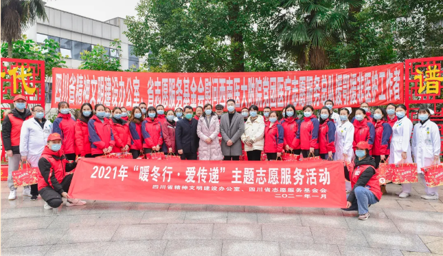 1月21日上午,四川省精神文明建设办公室、四川省志愿服务基金会来到附属医院,开展“暖冬行•爱传递”主题志愿服务活动,慰问附属医院党团医疗志愿服务总队,为援鄂援非医护工作者送上新春祝福。这是省上首次对十佳志愿服务组织开展的慰问活动。