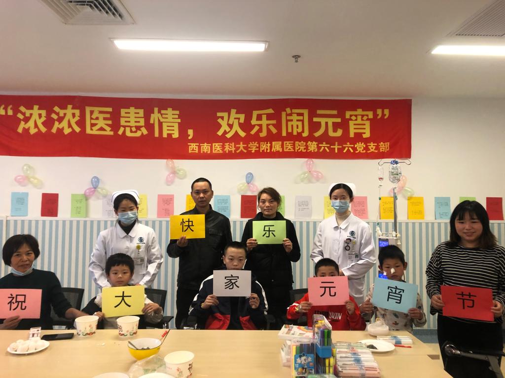 为了让患儿在科室也能感受到过年的氛围,2月26日下午,在附属医院第六十六党支部书记杨春及儿外科副护士长魏丽平的带领下,科室医护人员组织患儿及部分家属包汤圆、猜灯谜。考虑到部分患儿不能下床,医护人员贴心地把灯谜带到病房,方便每个患儿都能参与活动。小朋友们通过揉、捏、团等方法体验包汤圆的乐趣,同时积极参加猜灯谜活动,体验想和推测的快乐,现场欢声一片,其乐融融。