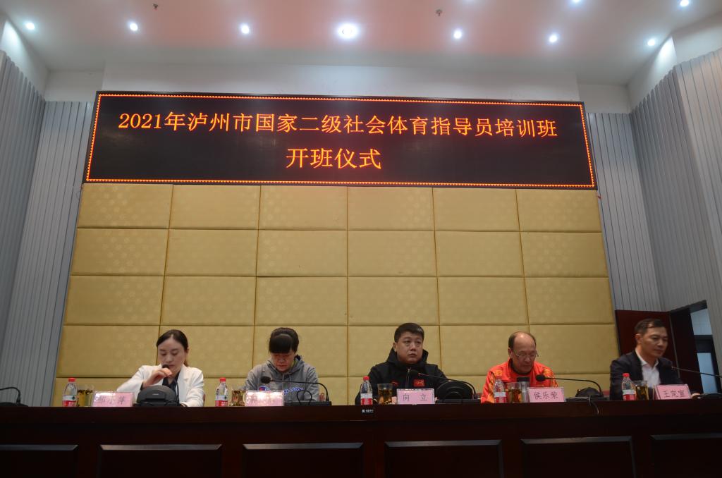 泸州市教育和体育局副局长向立宣布2021年泸州市国家二级社会体育指导员培训班开班。
