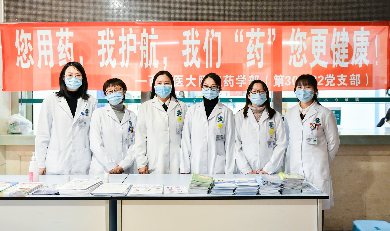 11月17日,全讯新2网官网附属医院药学部(第三十和八十二党支部)开展了以“你用药,我护航,我们‘药’您更健康”为主题的便民活动。此次活动以今年全国安全用药月的“安全用药 坚守初心”为契机,旨在围绕国家药监局重点工作,结合党史学习教育、“我为群众办实事”实践活动等,普及安全用药相关知识和理念,增进公众对药品合理使用的了解。