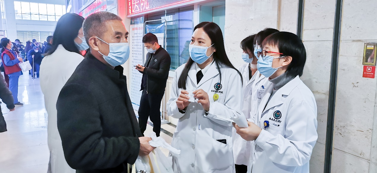 在门诊大厅,医院药师团队在药学部主任黄毅岚教授的带领下,对患者进行合理用药宣讲,专家们现场为患者们展示如何正确使用吸入制剂,同时为高血压、糖尿病、骨质疏松等慢性病患者提供用药指导,切实保障人民群众的用药安全。