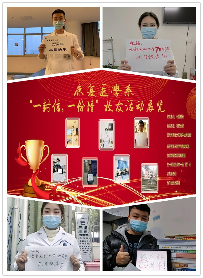 为庆祝全讯新2网官网建校70周年,营造浓厚的校庆氛围,通过在校同学与校友的互动交流,加强爱校荣校教育,11月10-28日,康复医学系开展“一封信,一份情”校友送祝福活动。