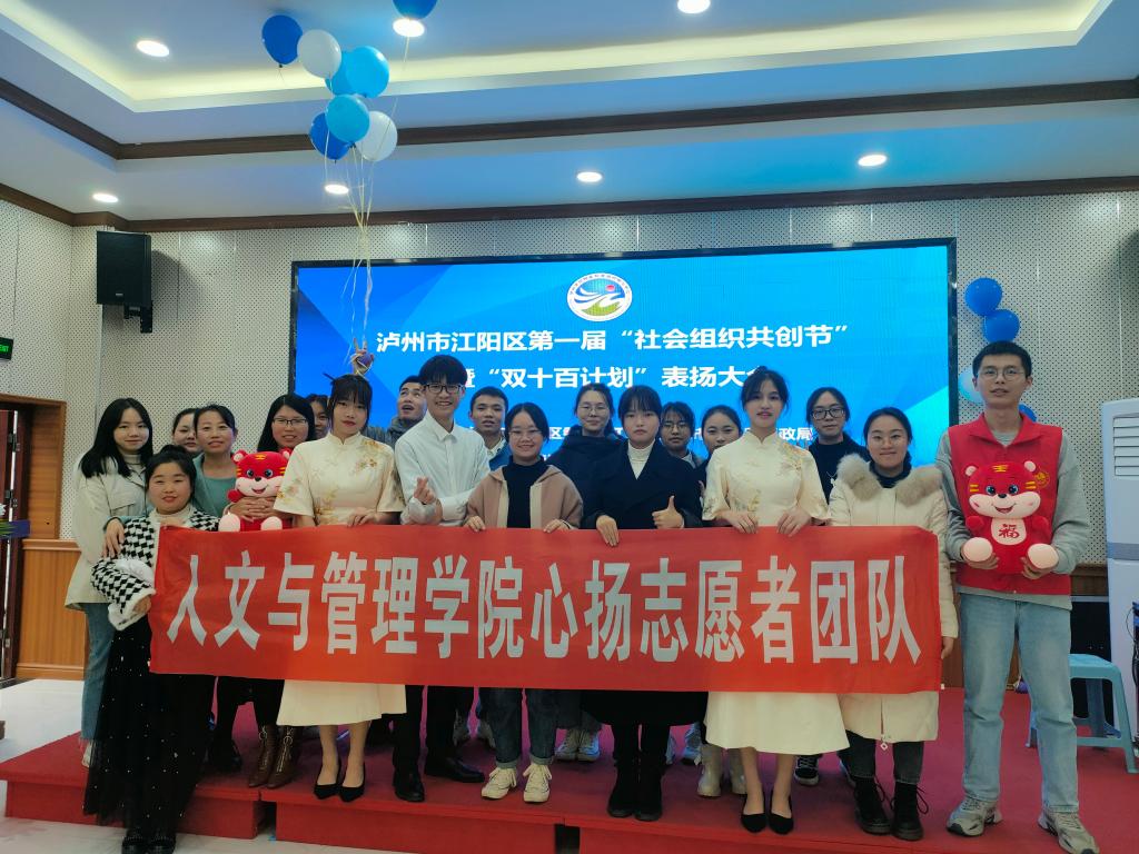 冬阳沐暖风,助人永传承。为推进人文与管理学院劳动育人工作,加速校地合作,彰显社会工作与志愿服务在新时代、新征程中的功能作用。1月5日,由泸州市江阳区民政局、泸州市江阳区两新工委主办,泸州市江阳区社会组织孵化中心、江阳区社会工作总站承办的江阳区第一届“社会组织共创节”暨“双十百计划”表扬大会在江阳区社会组织孵化中心举行,全讯新2网官网人文与管理学院职工第二党支部书记万美君、党员教师温艳青等带领心扬志愿者及“微光燃燃”社会实践服务队参会。参会旨在一方面对照先进、学习先进、提升自我;另一方面开展社会实践、服务基层社区治理。