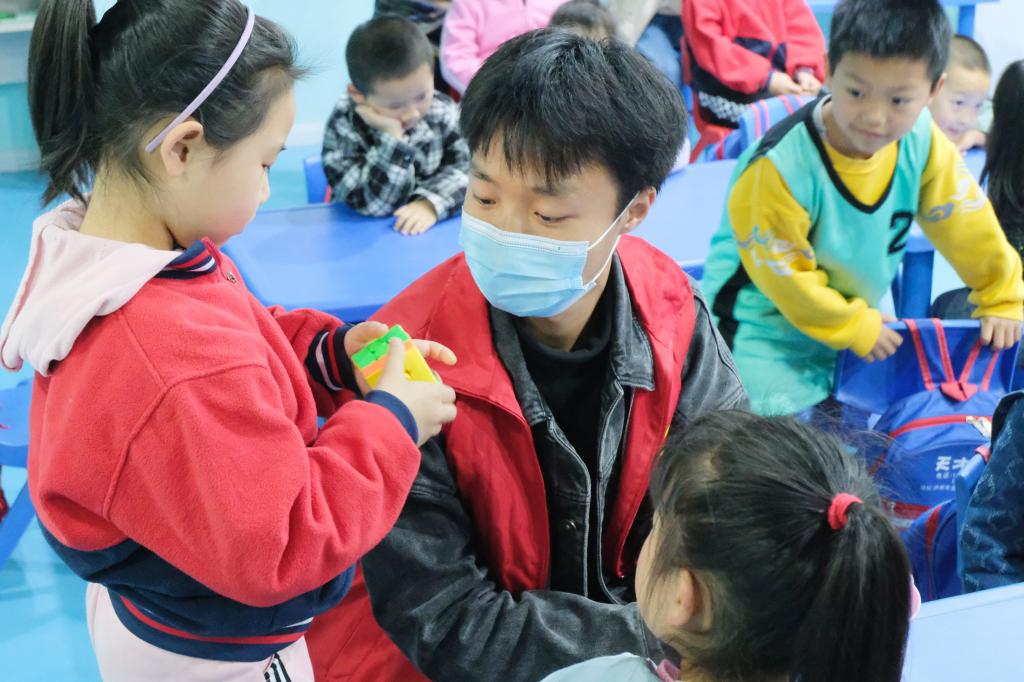 活动中,志愿者们帮午睡后的小朋友们穿戴整齐、整理床铺,并为小朋友们分发糖果饼干。为了进一步拉近相互之间的距离,志愿者们向小朋友做自我介绍并鼓励他们积极互动。随后,志愿者们与小朋友进行“击鼓传花”游戏,并带动他们一起展示才艺,大家相处融洽,现场气氛热烈。志愿者们还现场教学如何绘制卡通牙齿,小朋友们都积极参与其中。在观看完口腔保健动画片后,领誓人带领小朋友们进行口腔保健的宣誓,引导小朋友们爱护牙齿,正确刷牙。