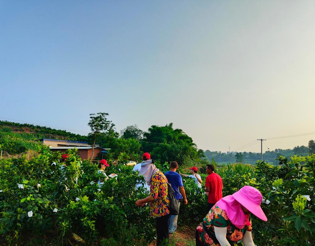14:00,志愿者一行人跟随徐文科前往各个实践基地,检查每一座果园水果的生长情况。根据果园存在的不同情况,徐文科分析其原因并给予通俗易懂的解答,让果农们收获良多。同时,志愿者们也向果农们学习嫁接、绑枝条(避免水果触地以及光照不足)等技术。看似简单的农业原来也有很多学问。正如徐文科所说,甩手掌柜是干不好农业的,农业就是要扎根土地,实践才能出真知。