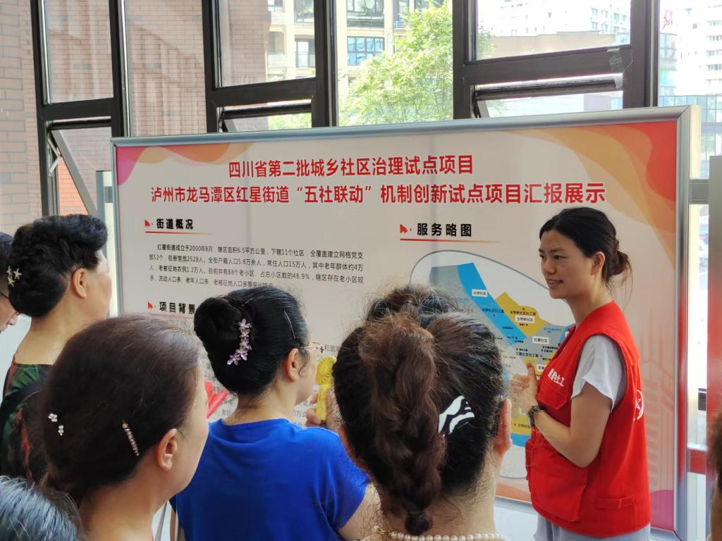 调查研究,是掌握现状的“显示屏”,是反应意愿的“直通车”,是推进发展的基本功。本次调研分别走访了红星社区、龙南社区和天立社区三个便民社区,由匠心社区负责人及“银发家园”志愿者团队带领夏令营成员到达指定调研社区,并协同社区负责人向成员们介绍各社区的项目成果。