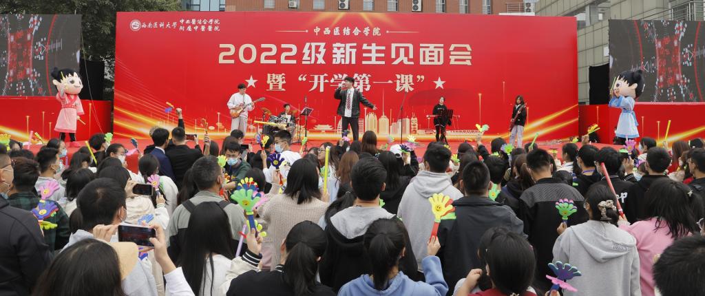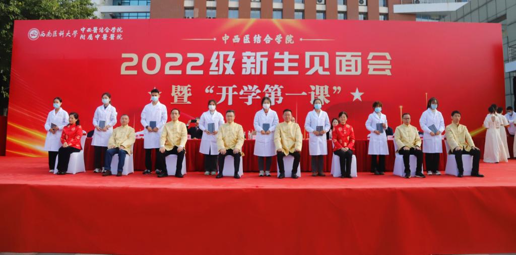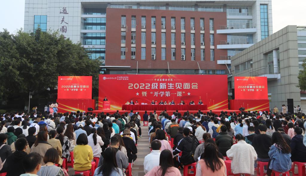 2022年11月5日,中西医结合学院举行2022级新生见面会暨“开学第一课”,党委书记李志、院长刘建等领导班子,知名校友、重庆华森制药有限公司董事长游洪涛,相关职能部门负责人、全体辅导员、兼职班主任、392名本科生新生和125名研究生新生参加了会议。会议由党委副书记雷学举主持。